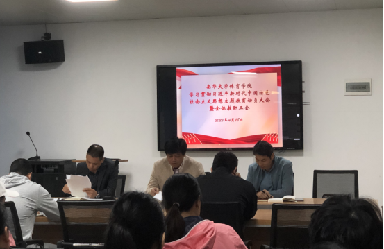 副院长陈志凌首先通报了《关于深入开展学习贯彻习近平新时代中国特色社会主义思想主题教育的实施方案》(南华校发〔2023〕7号)文件内容,要求全体老师要坚决贯彻党中央决策,按照校党委的统一部署,认真学习《实施方案》内容,用党的创新理论统一思想、统一意志、统一行动,弘扬伟大建党精神。