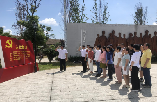 随后,大家步行前往初心广场,面对党员誓词,高举右手,在院长谭志刚的带领下大声朗读,重拾共产党员初心。