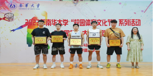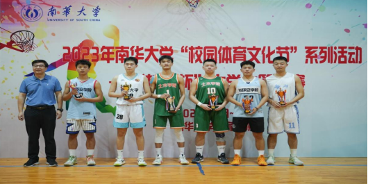 船山学院党委书记阳剑兰为男子扣篮大赛获奖运动员颁奖