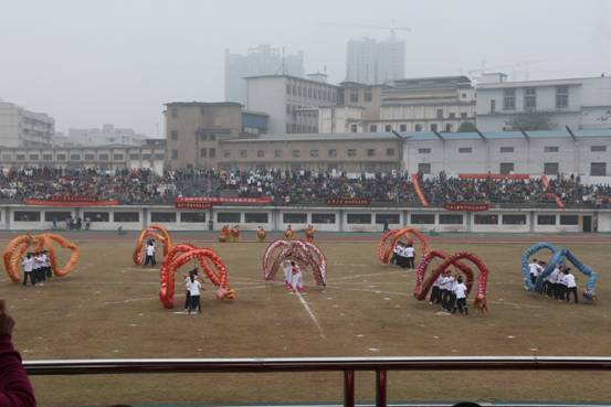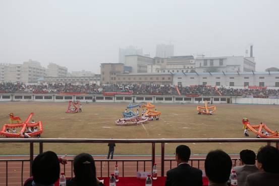接下来的表演由来自全校7个学院73名大学生组成的7条龙,5头狮子,通过“核特色”、“医品牌”、“海军国防”、“中国梦”、“庆华诞”五个篇章,分别摆出了放射形圆环、红十字、五角星、“中国梦”、“庆55”等图形字样,完美展现南华学子奋发拼搏的精神风貌及伟德bv1946的特色。和去年相比,此次表演为庆我校55年华诞,特扩大规模,新增了两条龙队,为突破传统在喜庆民乐的基础上既加入了经典武侠歌曲,又加入了《江南style》的流行元素,给大家带来了更大气、耳目一新的精彩表演。