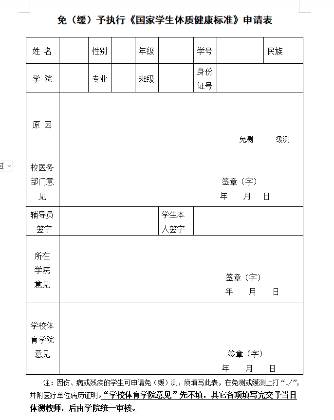 免(缓)予执行《国家学生体质健康标准》申请表.docx